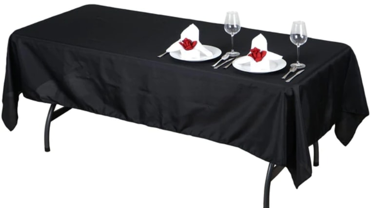 Black Polyester Rectangular Tablecloths- a versatile and popular choice for event decor and table. Made to fit an 8' rectangular table. Please Contact Us to reserve at least a week in advance.